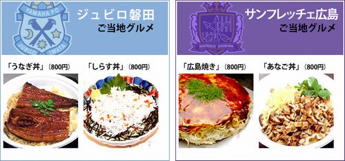 Jリーグは、11月3日(水・祝)に国立競技場にてジュビロ磐田vsサンフレッチェ広島の対戦で行われる「2010Jリーグヤマザキナビスコカップ 決勝」において、両クラブのご当地グルメを販売いたします。
