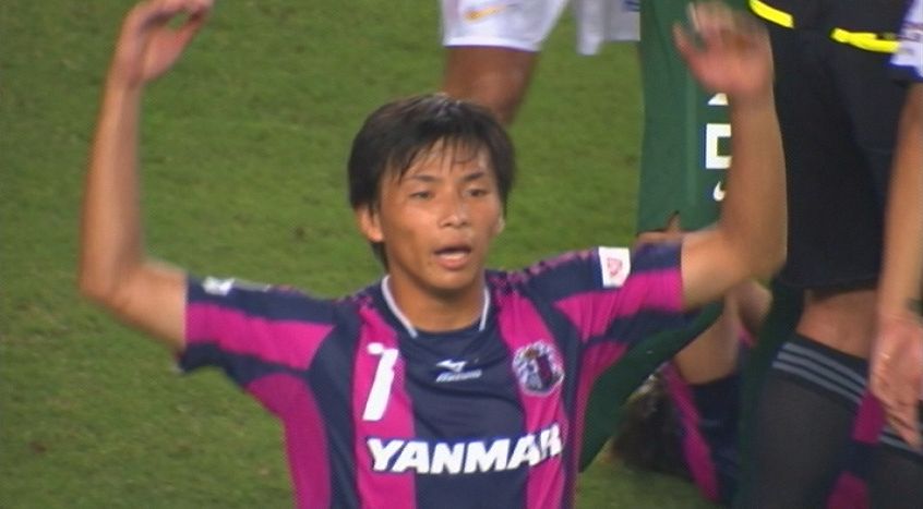 ※セレッソがPKを得た場面でPK蹴らせてもらえなかった乾、ベンチに向けて怒りの形相。茂庭になだめられる。