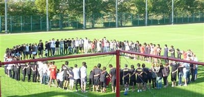 某選手は残り5試合での逆転残留を固く誓った。「とにかく明るく行こう」とのクラブ側の呼びかけで、夫人や子供らも参加。スタッフの親族が所属する上半身ビキニ姿のフラダンスチーム10人が、踊りを披露するサプライズ演出まで登場。打ちひしがれたはずのチームに笑顔が広がった。