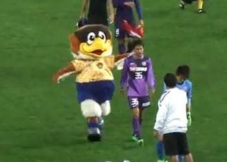 仙台の元エース佐藤寿人と握手を交わすベガッ太さん