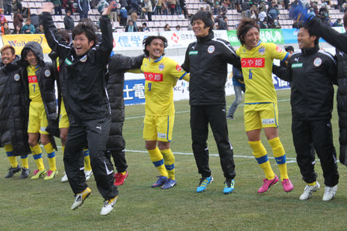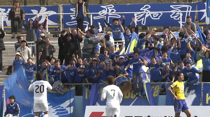 3月11日に、山形が今季初勝利を挙げた。前半28分、宮城生まれ福島育ちのFW万代宏樹(26)のシュートのこぼれ球を、山形出身のMF秋葉勝(28)が押し込んで先制。後半27分には再び秋葉が、今度は約35メートルのロングシュートを決めて白星をたぐり寄せた。今季就任した奥野僚右監督(43)にとってもうれしい初勝利。「東北の人たちに少しでも元気が与えられれば」としみじみと語っていた。