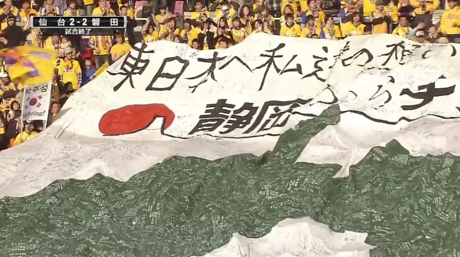 ※試合前、磐田側に広げられた仙台への寄せ書きビッグフラッグ