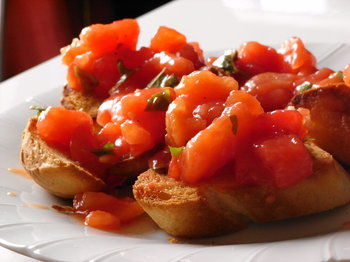 明日の朝食はフランスパンとトマトでブルスケッタにしよう
