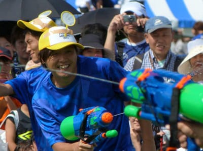 水鉄砲サイドにいたが、選手たちが水鉄砲で盛り上がってて、佐々木が一番はしゃいでた
