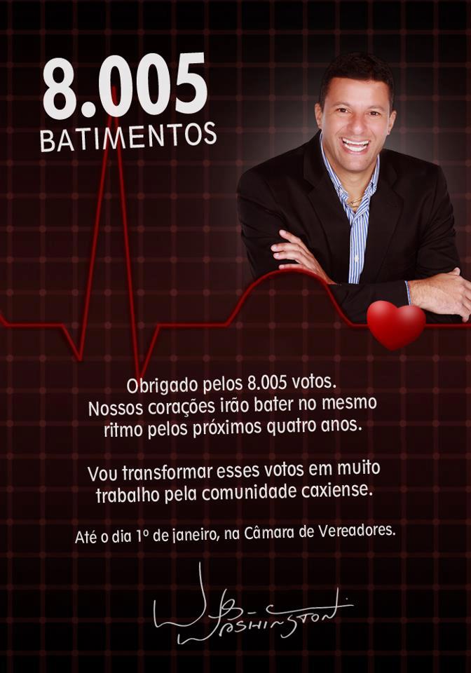 ブラジル南部カシアス・ド・スルの市議会議員選挙に出馬していたワシントンが、8005票を集めトップ当選したそうです。