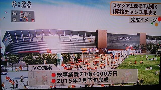 J1昇格には1万5000人を収容出来るスタジアムが必要で長野市はこれまで、3年後の2016年シーズンからの稼働を目指していました。