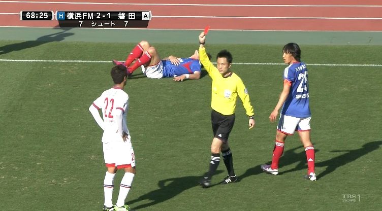 ※MFチョン・ウヨンが一発レッドで退場。ドリブルを手を使って止めようとしたマルキーニョスに報復で体当たり
