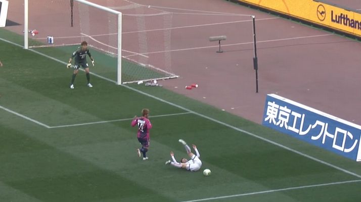 唯一微妙なのが東がハンド取られてゴール取り消されたトコだけ。あれは確かに判断に迷うシーン。