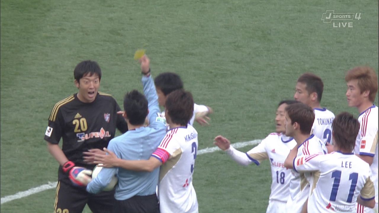山口のゴールがオフサイドだったって揉めてたのかな?