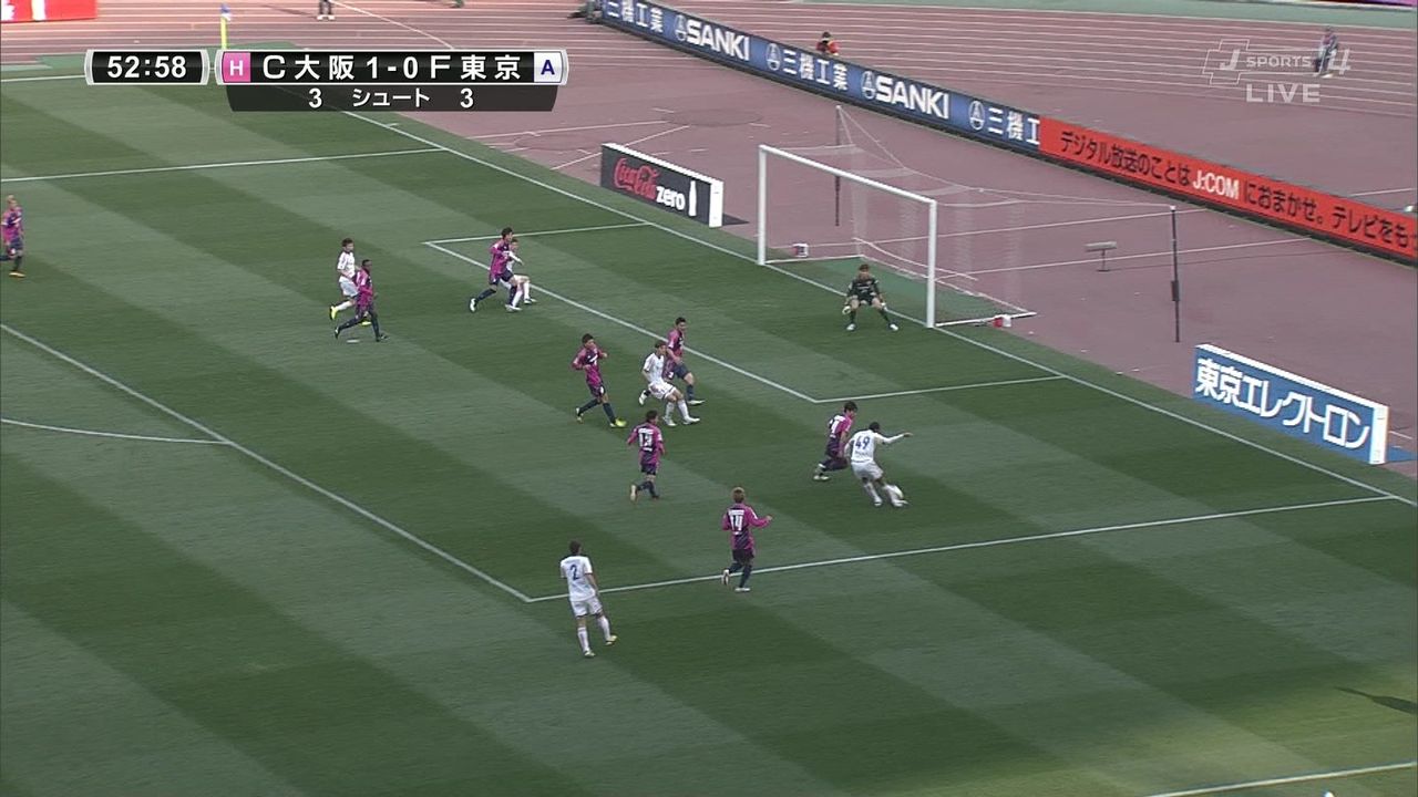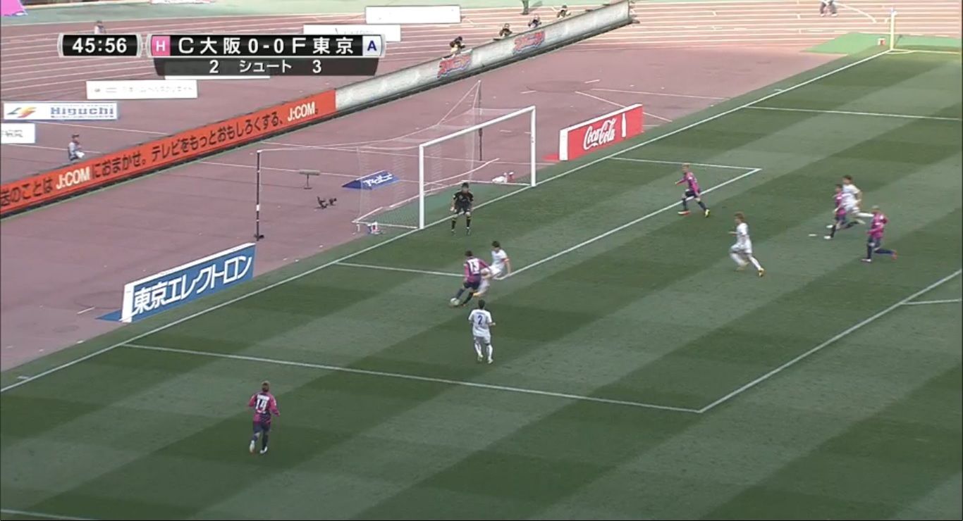 開幕2連勝同士の対戦。東京は序盤からボールを保持し、C大阪ゴールに迫ったが、決めきることができず。C大阪もシュート数が少なく、互いに無得点で前半を折り返した。