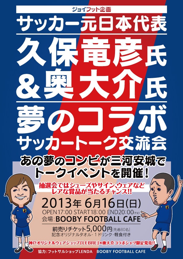 6/16日に開催される 「元サッカー日本代表 久保竜彦氏&奥大介氏 夢のサッカークリニック」 は当初ティオサッカースクール生限定のイベントでしたが多少空きがございますのでスクール生以外の募集を開始いたします。