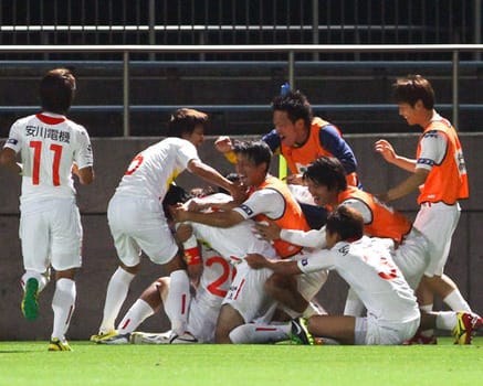 先制を許したギラヴァンツは前半30分、MF森村昂太選手のゴールで同点。前半終了間際に1点を加えられたが、後半開始早々にMF小手川宏基選手が得点を決め、再び同点に。後半21分、MFアン・ヨンギュ選手がこぼれ球をヘディングでゴールに押し込み、逆転勝利を決めた。