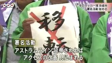 サンフレッチェ広島の本拠地移転に反対するEスタ周辺住民が署名活動を開始