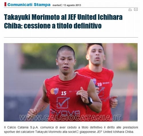 [カターニア公式]Takayuki Morimoto al JEF United Ichihara Chiba: cessione a titolo definitivo