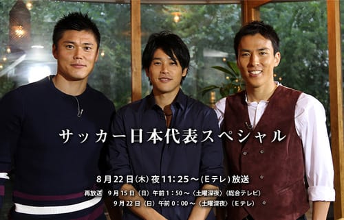 日本代表の長谷部誠・川島永嗣・内田篤人の3選手が出演し、各々が好きな歌について語りました