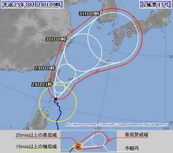 米軍の台風情報では日本上陸を予想していて、翌9月1日午前9時に愛知~静岡あたりだそうです。