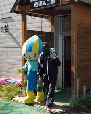FC岐阜応援マスコットのミナモも、北アルプス登頂成功を祈願し、お見送りに駆け付けました。
