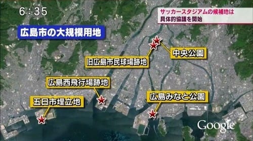 広島のサッカースタジアム検討協議会、建設用地9か所リストアップ