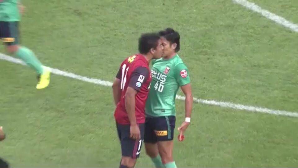 新婚の浦和DF森脇、試合中に鹿島FWダヴィに唇奪われる