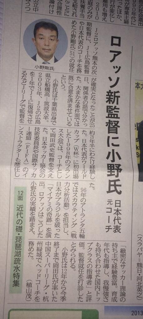 熊日に小野剛が確実と来た
