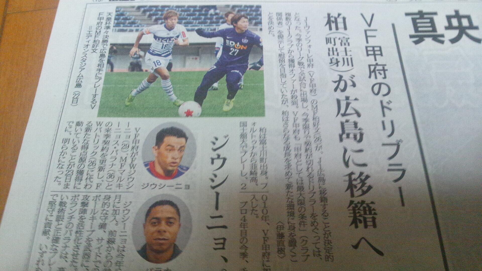 [報知]【甲府】MF柏が広島移籍へ 複数クラブ争奪戦の末