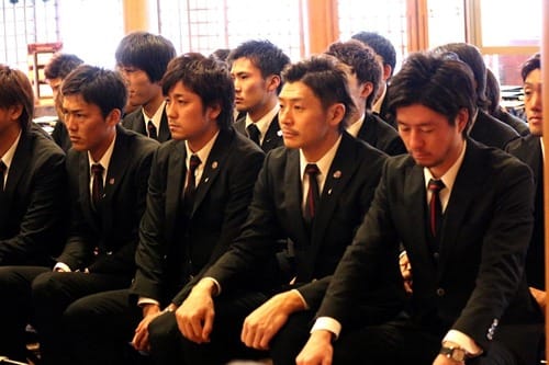 まずは恒例 北海道神宮での必勝祈願から、集合写真撮影に。