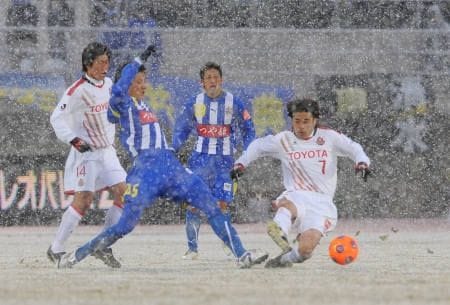 雪だと個人技勝負になるのか、だんだんと名古屋ペースになり主に山形サイドで試合してたせいか