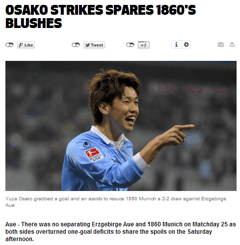 次の記事 HOME 前の記事 1860ミュンヘン大迫勇也が1G1Aの活躍!チームは終了間際に追いつきE・アウエと分ける 2014.03.16 00:28 109 海外 大迫勇也 いいね! LINE B!はてブ 更新通知 日本代表FW大迫勇也が所属する1860ミュンヘンは敵地でエルツゲビルゲ・アウエと対戦。 スタメン出場した大迫は、前半2分に先制ゴールをアシストすると、後半ATに同点弾となる移籍後4ゴール目を挙げました。[ブンデスリーガ公式]OSAKO STRIKES SPARES 1860’S BLUSHEShttp://www.bundesliga.com/en/liga2/news/2013/0000288376.php 90. Min: Jaaaa! Dann doch noch der Ausgleich! Osakoooo!! #tsv1860— TSV 1860 Munchen (@TSV1860) 2014, 3月 15サコの日(3月5日)の入籍後、これで2戦連続ゴール! いいね! LINE B!はてブ 更新通知 次の記事 HOME 前の記事 おすすめ記事 鹿島アントラーズの公式SNSのリプ欄が大荒れ ピトゥカ放出を求めるサントスサポーターからコメント殺到 独1部ドルトムントのサポーターの中に溶け込む見慣れたユニフォーム サガン鳥栖がリトアニア代表MFヴィキンタス・スリヴカの加入を発表 「ヴィキと呼んでください!」 109 コメント 1. 名無しさん 2014.3.16 00:29 ID: NmYzkzMGRj 半端ないって! 2. 名無しさん 2014.3.16 00:30 ID: ZiMDc3NTBl 1! 3. 名無しさん 2014.3.16 00:30 ID: IyNmVmMDZl おいおい半端ないな~ 移籍して順調過ぎて怖い 4. 名無しさん 2014.3.16 00:31 ID: FhNWMyYWQ5 半端ないなー半端ないわー 5. 鹿さん 2014.3.16 00:31 ID: BhNmM4NjAx 鹿島も調子いいし言うことなし♪ 6. 名無しさん 2014.3.16 00:31 ID: EyZTNmOTNk トレパンマンのキックが起点だったのかw 7. 名無しさん 2014.3.16 00:31 ID: RmNmIzNDA2 以下、アウエのダジャレ禁止 8. 名無しさん 2014.3.16 00:31 ID: UyYmRmZTY1 すげえ!そしてキーパーのズボンが気になるw 9. 名無しさん 2014.3.16 00:32 ID: Y3NGRjM2Ri 以下半端ない禁止 10. 名無しさん 2014.3.16 00:32 ID: ViNmIzMmY4 サコ最高! 11. 名無しさん 2014.3.16 00:32 ID: AwMTQ0ZjNi 大迫素晴らしいけど、大迫のチームのキーパーのキック適当過ぎてワロタ 12. 名無しさん 2014.3.16 00:32 ID: dhNGJmMGY5 さすが!半端ない 13. 名無しさん 2014.3.16 00:32 ID: cxMGNiZWE5 半端ない! 14. 名無しさん 2014.3.16 00:32 ID: E5ZGExZjVm 半端ないって~ 15. 名無しさん 2014.3.16 00:33 ID: RlYzJhNDk4 半端ないな。 2部じゃ物足りないんだろうか 16. 鹿 2014.3.16 00:34 ID: E5Y2U1MjI5 おーおおー♪ おーさこー♪ おっおっおーさこー♪ 17. 名無しさん 2014.3.16 00:34 ID: MzNjcwMmQ3 大迫半端ないって! 18. 名無しさん 2014.3.16 00:34 ID: cyZGEyNDk0 個人昇格あるで! 19. 名無しさん 2014.3.16 00:34 ID: BhNGM1YmU5 やったね 20. 名無しだけど...どやさ!? 2014.3.16 00:36 ID: g2Njg1NWZh 大迫半端ねえー 1 2 3 … 6 次へ » コメントする お名前 コメント(1分ごとに反映されます) 1. 名無しさん 2014.3.16 00:29 ID: NmYzkzMGRj 半端ないって! 2. 名無しさん 2014.3.16 00:30 ID: ZiMDc3NTBl 1! 3. 名無しさん 2014.3.16 00:30 ID: IyNmVmMDZl おいおい半端ないな~ 移籍して順調過ぎて怖い 4. 名無しさん 2014.3.16 00:31 ID: FhNWMyYWQ5 半端ないなー半端ないわー 5. 鹿さん 2014.3.16 00:31 ID: BhNmM4NjAx 鹿島も調子いいし言うことなし♪ 6. 名無しさん 2014.3.16 00:31 ID: EyZTNmOTNk トレパンマンのキックが起点だったのかw 7. 名無しさん 2014.3.16 00:31 ID: RmNmIzNDA2 以下、アウエのダジャレ禁止 8. 名無しさん 2014.3.16 00:31 ID: UyYmRmZTY1 すげえ!そしてキーパーのズボンが気になるw 9. 名無しさん 2014.3.16 00:32 ID: Y3NGRjM2Ri 以下半端ない禁止 10. 名無しさん 2014.3.16 00:32 ID: ViNmIzMmY4 サコ最高! 11. 名無しさん 2014.3.16 00:32 ID: AwMTQ0ZjNi 大迫素晴らしいけど、大迫のチームのキーパーのキック適当過ぎてワロタ 12. 名無しさん 2014.3.16 00:32 ID: dhNGJmMGY5 さすが!半端ない 13. 名無しさん 2014.3.16 00:32 ID: cxMGNiZWE5 半端ない! 14. 名無しさん 2014.3.16 00:32 ID: E5ZGExZjVm 半端ないって~ 15. 名無しさん 2014.3.16 00:33 ID: RlYzJhNDk4 半端ないな。 2部じゃ物足りないんだろうか 16. 鹿 2014.3.16 00:34 ID: E5Y2U1MjI5 おーおおー♪ おーさこー♪ おっおっおーさこー♪ 17. 名無しさん 2014.3.16 00:34 ID: MzNjcwMmQ3 大迫半端ないって! 18. 名無しさん 2014.3.16 00:34 ID: cyZGEyNDk0 個人昇格あるで! 19. 名無しさん 2014.3.16 00:34 ID: BhNGM1YmU5 やったね 20. 名無しだけど...どやさ!? 2014.3.16 00:36 ID: g2Njg1NWZh 大迫半端ねえー 21. 名無しさん 2014.3.16 00:36 ID: JjYzcxNTg0 ブンデス2部にも大迫被害者の会が… しかしクロス上げたやつの突破も凄いな 22. 名無しさん 2014.3.16 00:36 ID: NjZWM1Mzg4 大迫は半端ないが 管理人のダジャレは-50TGPくらい。 23. 名無しさん 2014.3.16 00:36 ID: Q5NzRkYzYz ハンパないって〜 24. 名無しさん 2014.3.16 00:37 ID: FmNmY4Y2E5 すげえええええええ! そして1860、なんか連携が良くなってる 25. 名無しさん 2014.3.16 00:37 ID: BkNTU2MDg0 もうエースとか半端ないって…! 26. 名無しさん 2014.3.16 00:37 ID: E4OTgyNjU2 日本でダヴィが活躍していると思ったら,ドイツでは大迫が活躍. 27. 名無しさん 2014.3.16 00:38 ID: BiZDgzNTZm ったく昼も夜もゴールはキッチリ決めてくるんだな。 28. 名無しさん 2014.3.16 00:38 ID: A5NzYyOWM2 大迫よりもキーパーのおっさん感が目立ちすぎるw 29. ななしさん@スタジアム 2014.3.16 00:39 ID: IxY2UyODQx GKは病院から抜け出してきたの? 30. 名無し 2014.3.16 00:39 ID: Q0NWJiY2Yw 守備