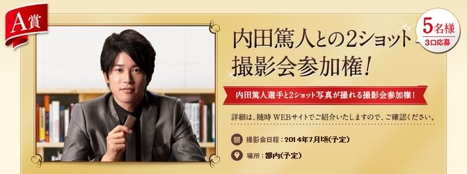 A賞5名は内田篤人との2ショット撮影会参加権!