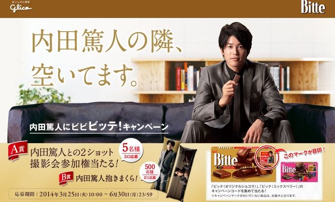 グリコ「Bitte」が内田篤人ファン垂涎のキャンペーンを実施!「内田篤人の隣、空いてます」(まとめ)