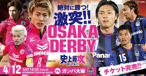 4・12大阪ダービーは前売りでチケット完売!47000人収容の長居では初(まとめ)