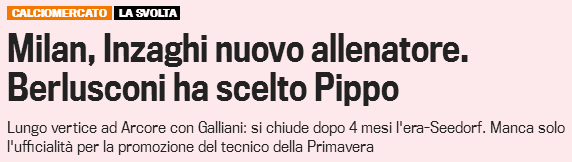 (ミラン、ベルルスコーニが選択。インザーギが監督に)