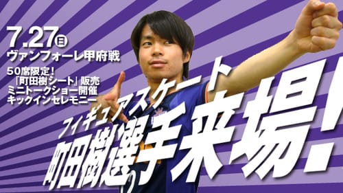 当日は50席限定の「町田樹シート」が販売されるほか、ミニトークショー、試合前のキックインセレモニーが行われれる。