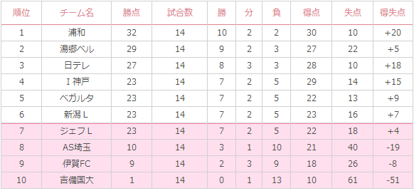 なでしこリーグは第14節を終え、レギュラーシリーズが残り4節。