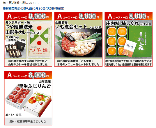 さて、旬・第2弾の御礼品では、「いも煮会セット」や「つや姫」など、山形が全国に誇る秋の味覚を取り揃えさせていただきました。また、庄内発の柿の新ブランド「柿しぐれ」もラインナップしています。