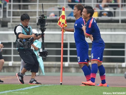 1勝1敗でこの試合を迎えた日本は、序盤から主導権を握り、得点機をつくり、前半33分にFW野津田岳人(広島)が、ペナルティエリア外から強烈なミドルシュートを放ち、先制ゴールを奪った。