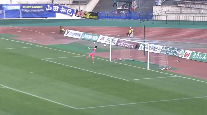 この試合の中の、山形MF宮阪政樹による超ロングFKゴールが話題になっていたのでご紹介します。