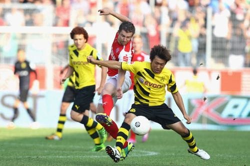 お目当ては、ドルトムントのU-23チームに登録されているMF丸岡だ。今年1月にC大阪から1年半の期限付きで移籍した18歳。先月23日の開幕戦(対レーバークーゼン)に「飛び級」で初のベンチ入りを果たすと、10日前の今月20日にはマインツ戦でリーグ戦デビュー。後半34分から出場し、日本人最年少のブンデス初出場記録をつくった。