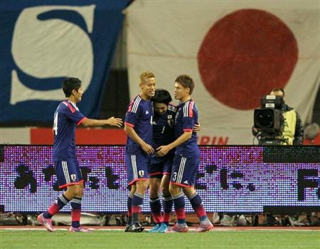 前半はジャマイカボールでキックオフ。6分、岡崎がペナルティーエリア左で獲得したFKを本田が左足で蹴ったが、GKに横っ飛びでセーブされた。15分、香川が中央で受けると左に相手DFをかわして左足でシュート。惜しくもゴールの左にそれた。16分、岡崎が中央でボールを奪うとドリブル。右サイドに流れた本田が受けるとさらに外に抜けだした柴崎にスルーパス。受けた柴崎が右足でクロスを入れると、ジャマイカGKがはじいたが、そのボールがジャマイカDFに当たりそのままゴールへ。オウンゴールで日本が先制した。(以下略、全文はリンク先で)