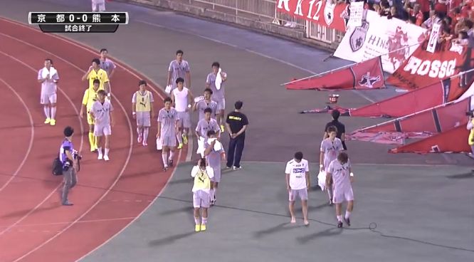 熊本側は暖かい拍手、一歩サンガ側は激しいブーイング http://t.co/2ieloCQtGx