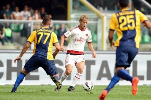 ACミランの日本代表FW本田圭佑(28)がアウェーのベローナ戦で先発。3トップで本田が右のFW、中央にFWフェルナンドトレス、左にFWエルシャーラウィが入った。