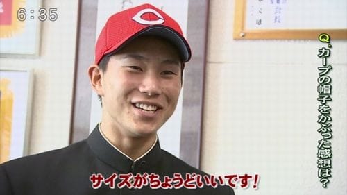 学校伝統のフルスイングに加え、50メートル走6秒0の走力がセールスポイント。将来の目標に「WBCでの優勝」を掲げる。サッカーはJ2磐田の大ファンで、この日はDF伊野波の髪形を意識し、運命の瞬間を待った。「これからはジュビロも応援しつつ、サンフレッチェとともに広島を盛り上げたい」と笑顔だった。