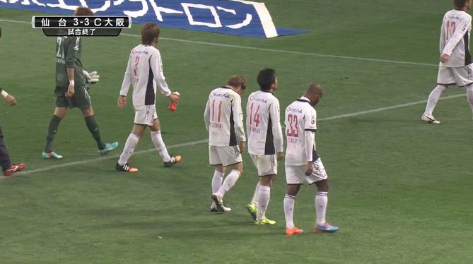 試合終了。仙台3-3セレッソ。戦術的なクオリティがどうとか言う以前の、気持ちの入り方が凄い試合だった。ラストの外国籍選手の2発にはただただ絶句。良いもん見させてもらいました…。