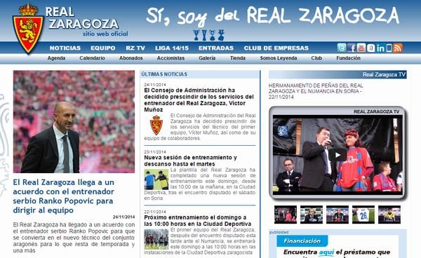 現在、レアル・サラゴサ公式サイトのトップページにて、ポポヴィッチ監督就任のニュースが大きく掲載されています。