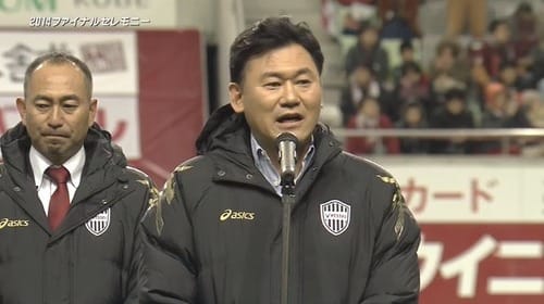 最終戦のセレモニーでのミキティの重大発表、ヴィッセルが個人会社から楽天グループに入るのって、かなり大きな事件やないの。…試合の話は聞かんといて