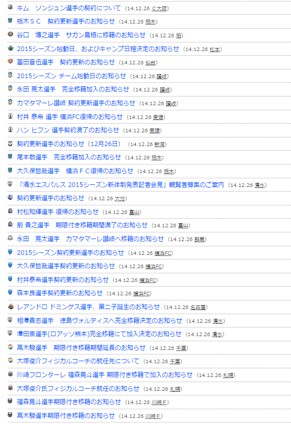 きょう26日は、各クラブが一斉に契約関係のニュースリリースを出したため、怒涛のリリースラッシュとなりました。