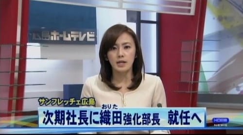 広島ホームテレビのニュースでも、女子アナがサンフレッチェ広島の次期社長にオリタン就任と報じましたなぁ…。