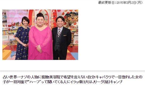 明日3月4日に放送されるテレビ朝日「マツコ&有吉の怒り新党」の「新3大○○」に、Jリーグのネタが使われることを先日お知らせしましたが、