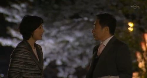 夫を亡くした須藤(左)と、前田警部補(右)の会話のシーン。
