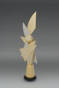 「勝利」や「栄光」の象徴である、月桂樹の葉(ローレル)と翼(ウィング)の片翼のイメージを融合したアシンメトリーなトロフィー。
